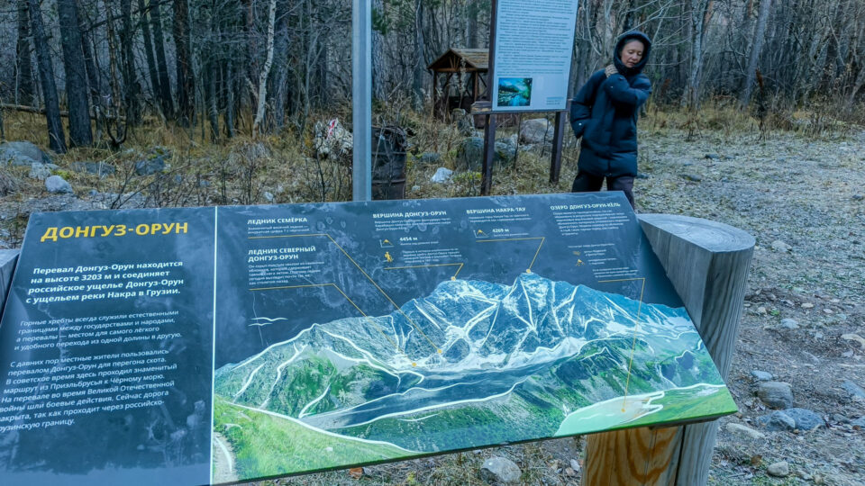В первый день мы отправились в поселок Эльбрус. Ну и конечно опять пошли по эко-тропе. Вообще она простирается от Азау до Тегенекли. И, конечно, передвежение по эко-тропе гораздо приятней чем вдоль автомобильной дороги. Есть и видео с этой поездки